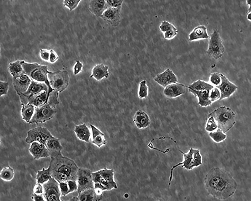 這株人胰腺癌細(xì)胞株源自于胰腺癌導(dǎo)管細(xì)胞,其倍增時(shí)間為52小時(shí)。染色體研究表明,該細(xì)胞染色體眾數(shù)為63,包括3個(gè)獨(dú)特標(biāo)記的染色體和1個(gè)小環(huán)狀染色體。該細(xì)胞的生長可被1unit/ml的左旋天冬酰胺酶抑制;能在軟瓊脂上生長;能在裸鼠上成瘤。 |